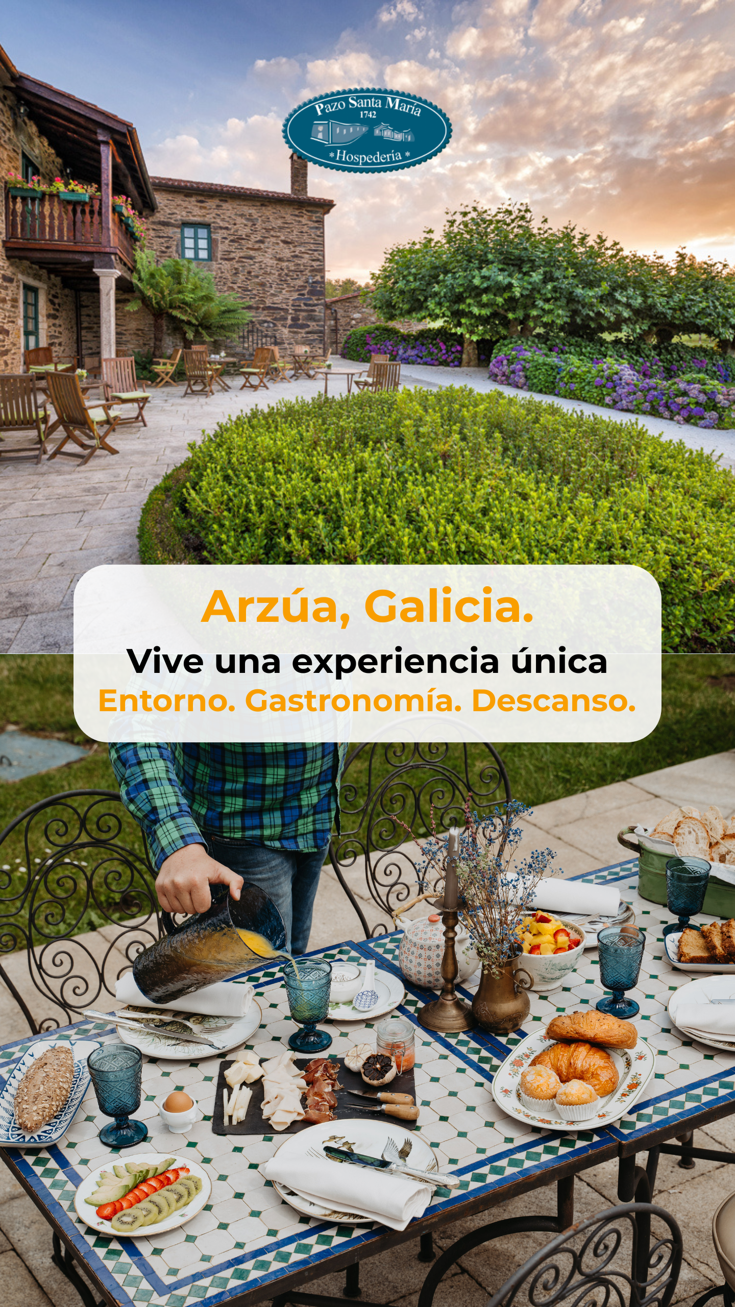 - Creatividades adaptadas al público → Diseñamos anuncios visuales en múltiples formatos (Reels, Stories, carruseles, imágenes) que destacaban el entorno único del Pazo y la experiencia cultural y gastronómica que ofrece.