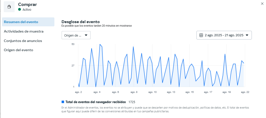 🔎 Píxel activo y optimizado → señales diarias y eventos clave configurados.